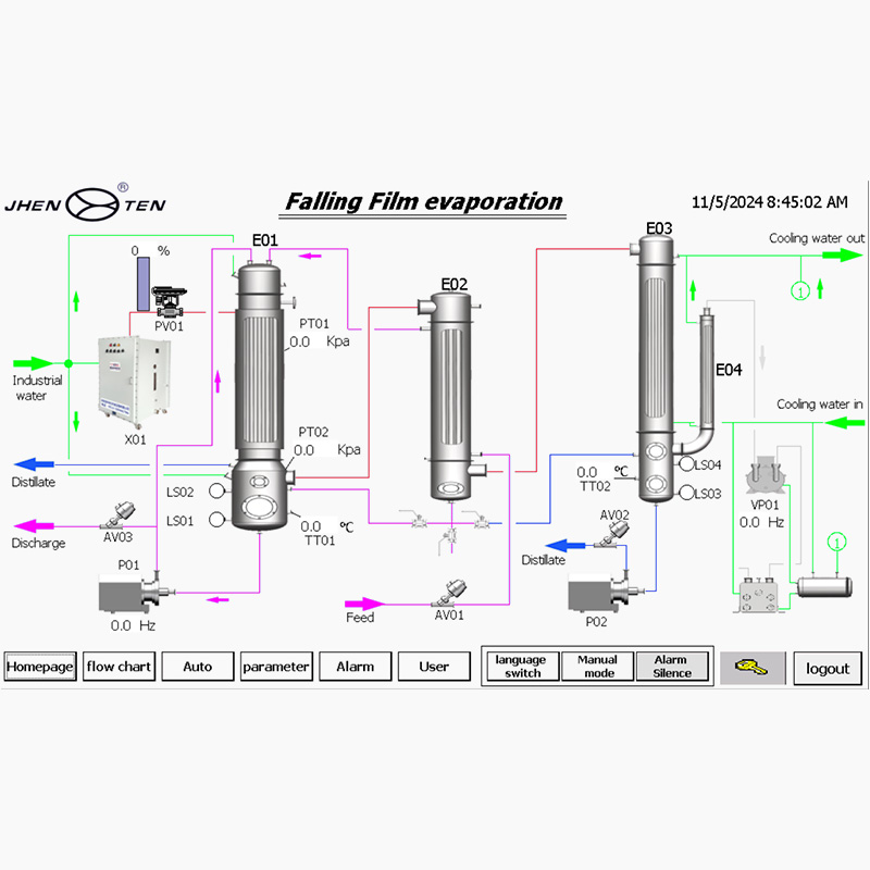 ● PLC/HMI interface: Preloaded multi-mode evaporation curves (continuous/batch)