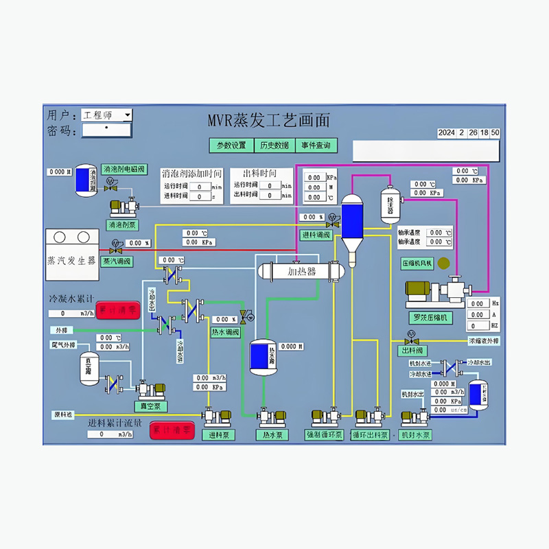基于OPC-UA協(xié)議實現(xiàn)設(shè)備層與信息層無縫對接,毫秒級數(shù)據(jù)采集頻率,確保蒸發(fā)過程全參數(shù)(能耗/產(chǎn)量/品質(zhì))實時上傳MES/ERP系統(tǒng)。配備電子批記錄與審計追蹤功能,助力客戶實現(xiàn)生產(chǎn)數(shù)字化與合規(guī)化管理升級。